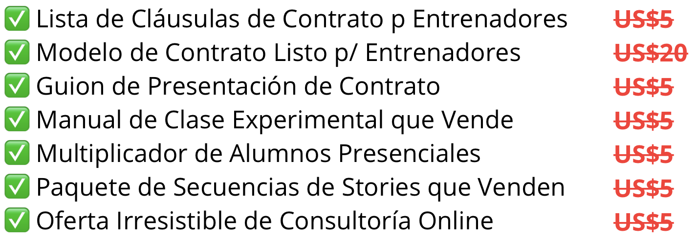 Recapitulando lo que recibirás con el MODELO DE CONTRATO LISTO para entrenadores personales: