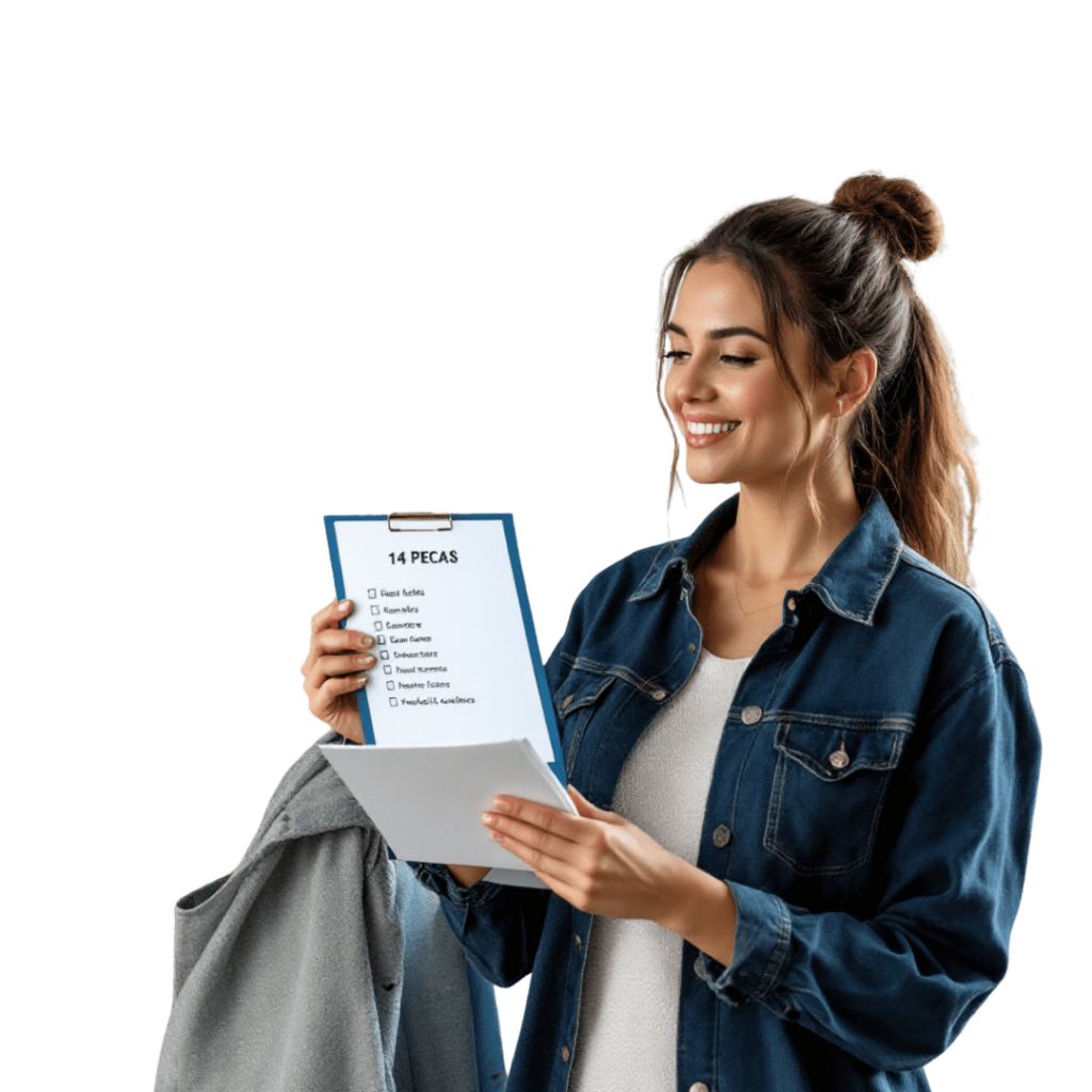 Este não é apenas um guia de moda. É a fórmula infalível para você se vestir bem todos os dias, sem esforço! Combinei peças estratégicas para criar mais de 130 looks, garantindo praticidade, estilo e versatilidade no seu dia a dia.